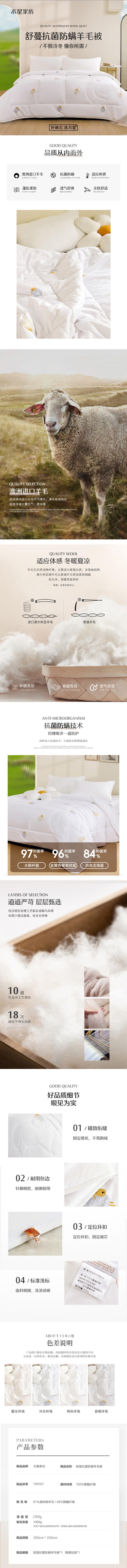 商品属性 [供应商] 深圳齐心集团股份有限公司 [品牌] 水星家纺(MERCURY) [型号] 129107 [面料材质] 100%聚酯纤维填充物 [商品规格] 200*230cm [商品明细] 舒蔓抗菌防螨羊毛被*1 精美包装*1