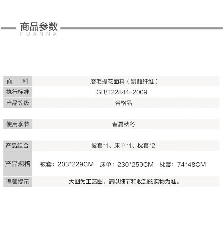 商品属性 [供应商] 深圳齐心集团股份有限公司 [品牌] 富安娜(fuanna) [型号] 博兰格 [面料] AB版磨毛面料(聚酯纤维)