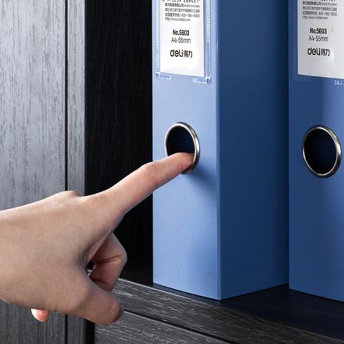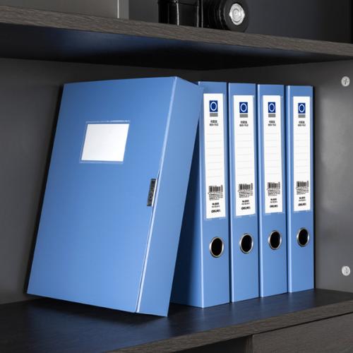 商品属性 [供应商] 得力集团有限公司 [品牌] 得力(DELI) [型号] 5603 [商品标题] 得力 5603 55mm加厚大容量档案盒 (只) 蓝 [销售单位] 只