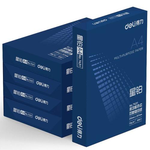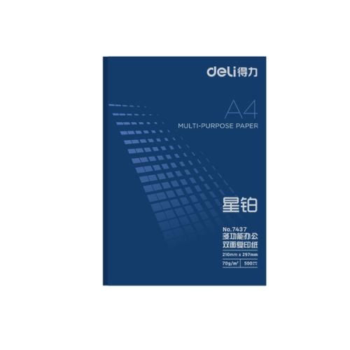 商品属性 [供应商] 得力集团有限公司 [品牌] 得力(DELI) [型号] 7437 [商品标题] 得力7437星铂复印纸-A4-70g-8包(混)(8包/箱)(箱) [销售单位] 箱