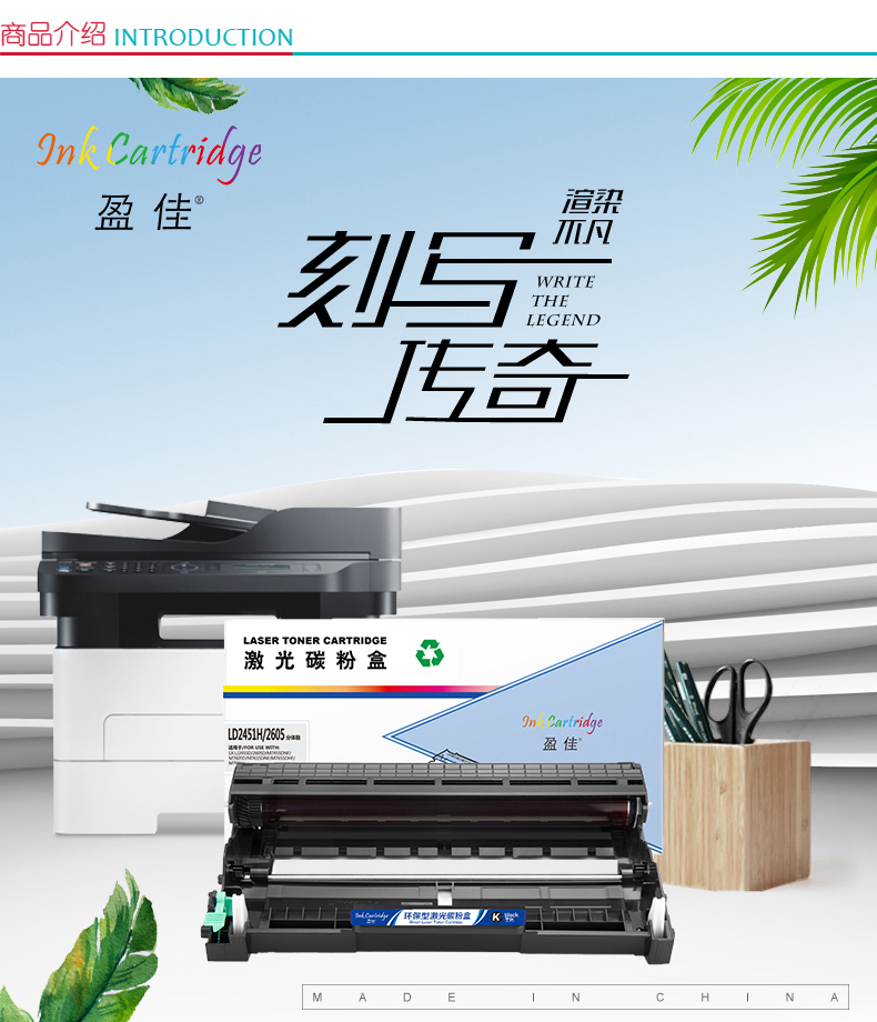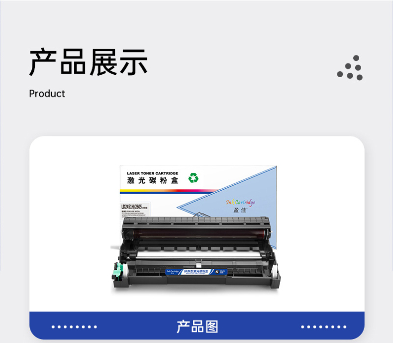 商品属性 [供应商] 科力普科技集团股份有限公司 [打印量] 12000页 [商品毛重] 0.72kg [适用机型] 适用机型:联想Lenovo 2451 2605D 2655DN 7605D [品牌] 盈佳 [型号] LD2451H/2605