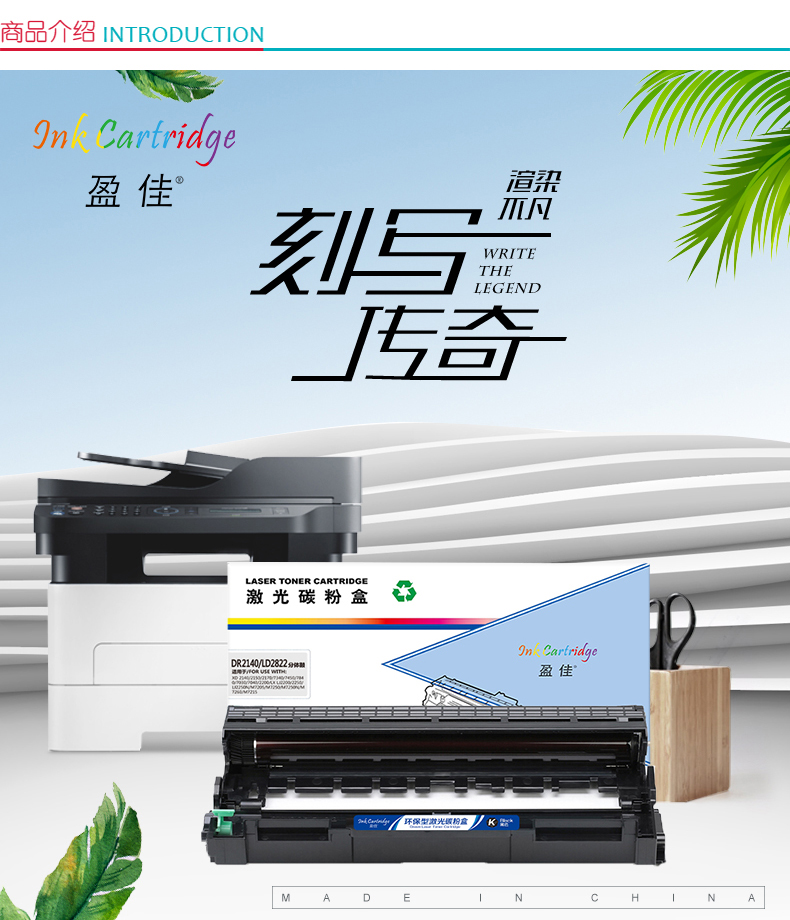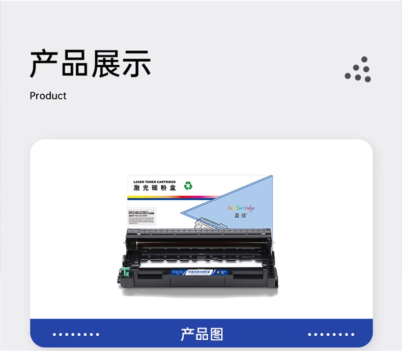商品属性 [供应商] 科力普科技集团股份有限公司 [适用机型] 适用机型:兄弟Brother HL-2140 HL-2150N HL-2170W [商品毛重] 0.9kg [打印量] 12000页 [品牌] 盈佳 [型号] DR2140/LD2822分体鼓