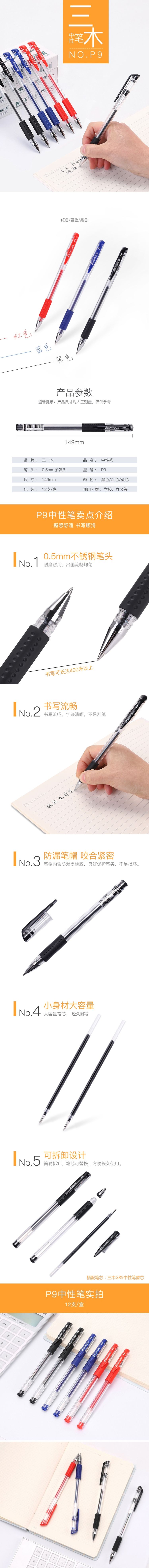 商品属性 [供应商] 全程速达科技有限公司 [名称] 内容 [品牌:] 三木(SUNWOOD) [商品名称:] 子弹头中性笔 [型号:] P9