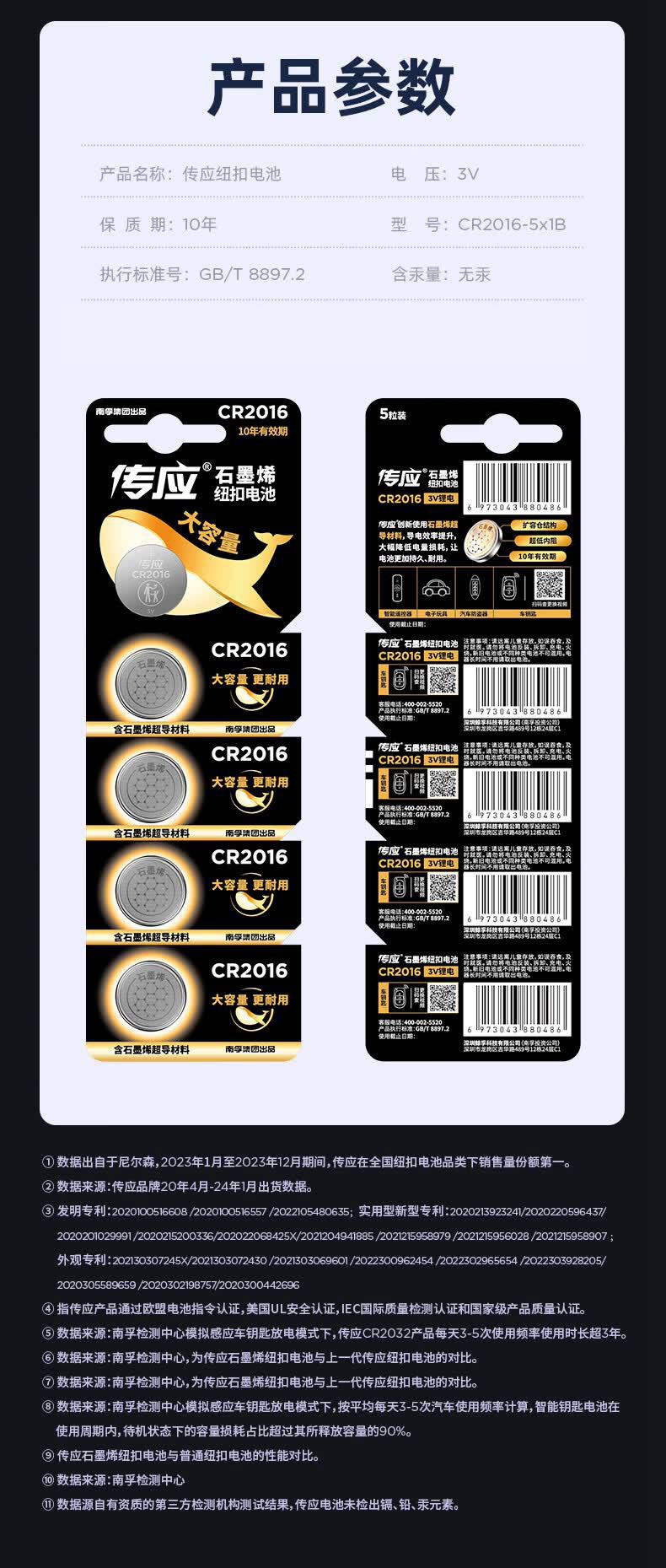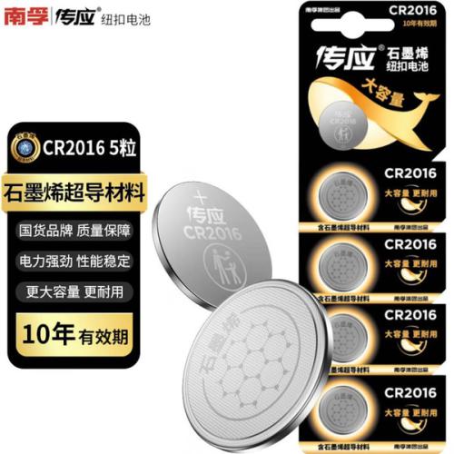 商品属性 [供应商] 得力集团有限公司 [品牌] 南孚(NANFU) [型号] CR2016-5B [商品标题] 南孚传应物联扣式电池CR2016 5粒卡装(卡) [销售单位] 卡 [重量] 0.004kg