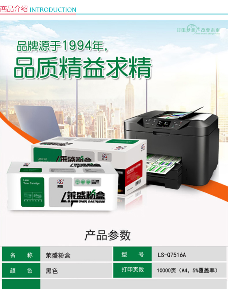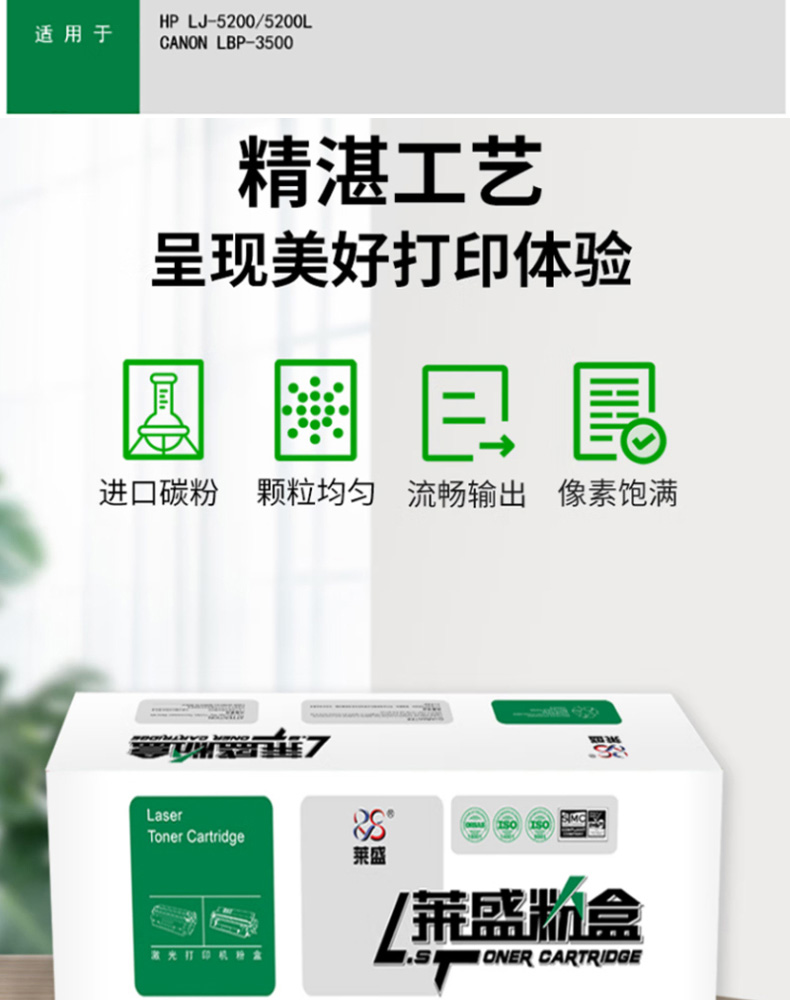商品属性 [供应商] 科力普科技集团股份有限公司 [打印量] 10000页 [商品毛重] 1kg [适用机型] 适用于:HP LJ-5200/5200L [品牌] 莱盛 [型号] LS-Q7516A