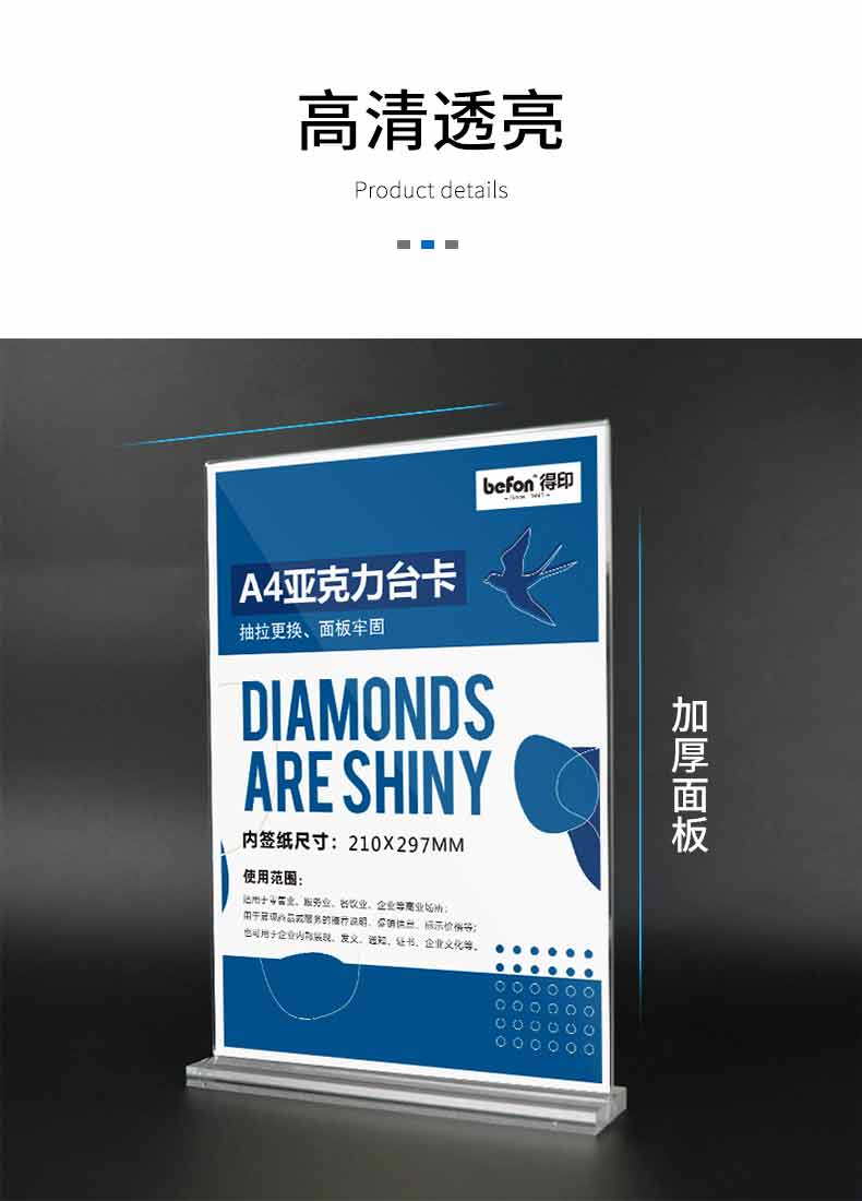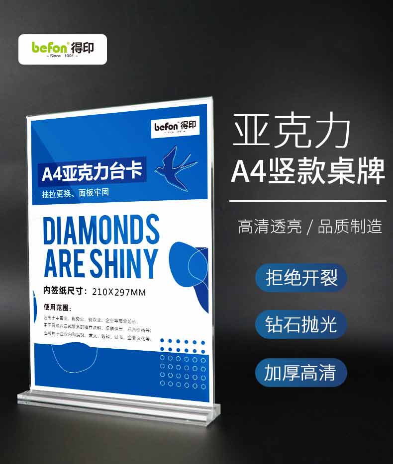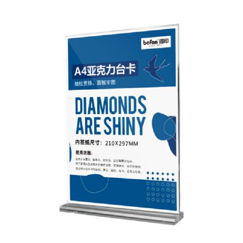 商品属性 [供应商] 德致商成集团有限公司 [材质] 亚克力 [尺寸] 210*297mm [包装清单] 展示牌*1 [类型] 桌牌 [形状] T型