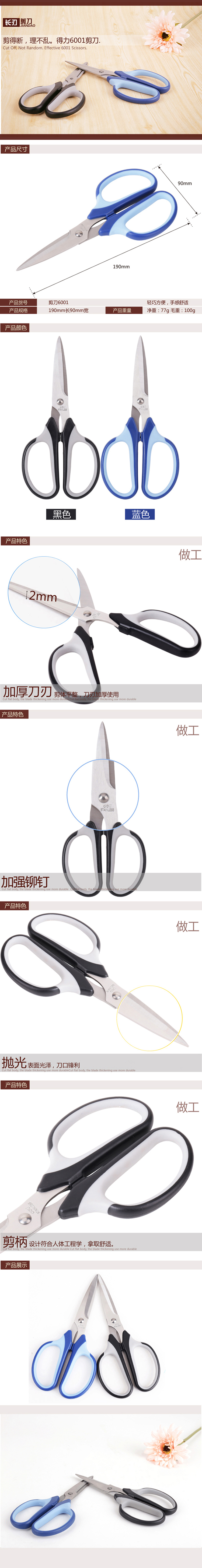 商品属性 [供应商] 全程速达科技有限公司 [名称] 内容 [品牌:] 得力(deli) [商品名称:] 大号剪刀 [型号:] 6001