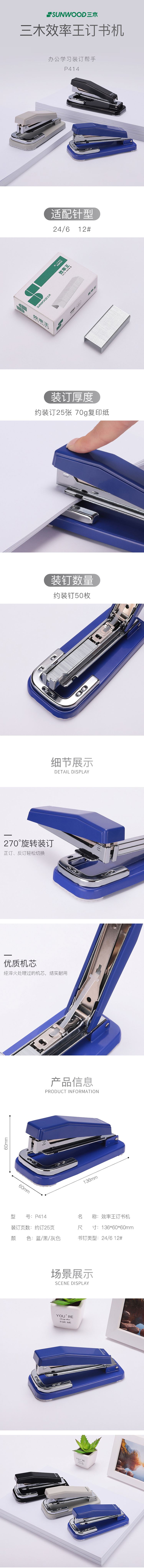 商品属性 [供应商] 全程速达科技有限公司 [名称] 内容 [品牌:] 三木(SUNWOOD) [商品名称:] 可旋转订书机 [型号:] P414