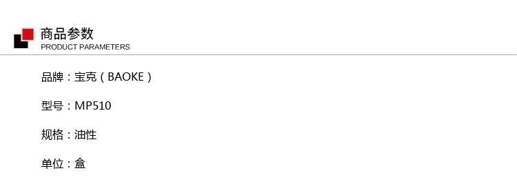 商品属性 [供应商] 深圳齐心集团股份有限公司 [品牌] 宝克(BAOKE) [型号] MP510 [产品特性] 普通装