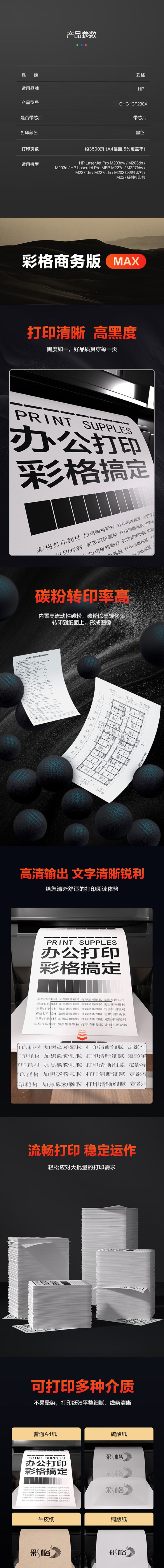 商品属性 [供应商] 全程速达科技有限公司 [名称] 内容 [品牌:] 彩格 [商品名称:] MAX版硒鼓 [型号:] CHG-CF230X