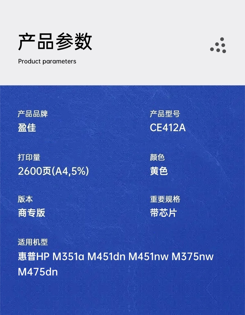 商品属性 [供应商] 史泰博(上海)有限公司 [品牌] 盈佳(Ink Cartridge) [型号] CE412A