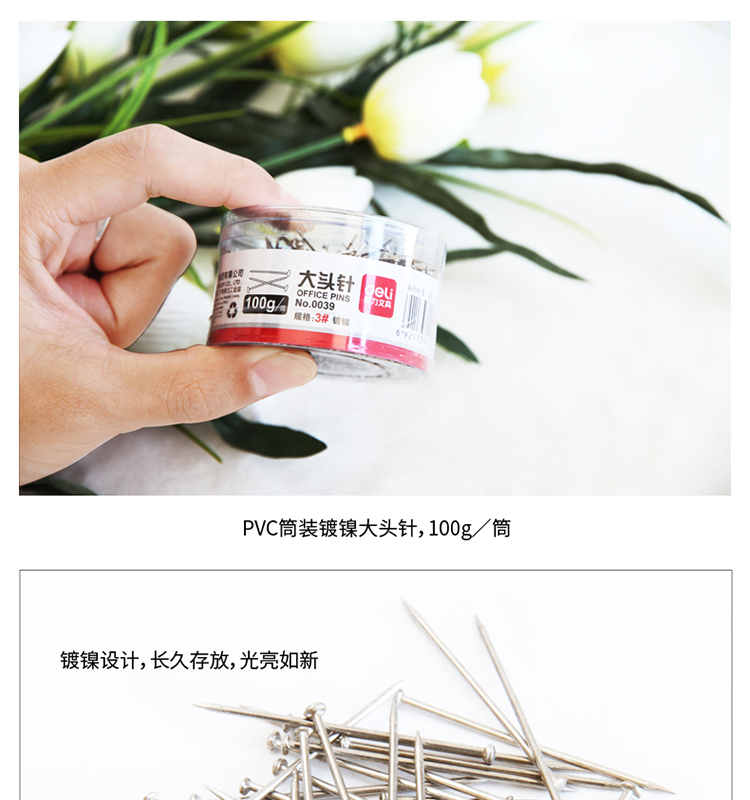 商品属性 [供应商] 德致商成集团有限公司 [商品毛重] 10.0kg [数量] 100克/筒 [类型] 大头针 [商品产地] 中国大陆