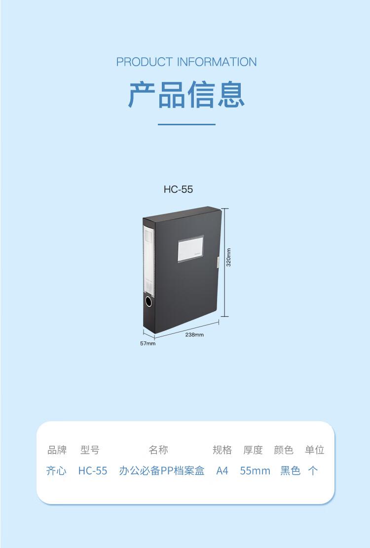 商品属性 [供应商] 深圳市怡亚通供应链股份有限公司 [品牌:] 齐心(COMIX) [型号:] HC-55 [规格:] A4 55mm