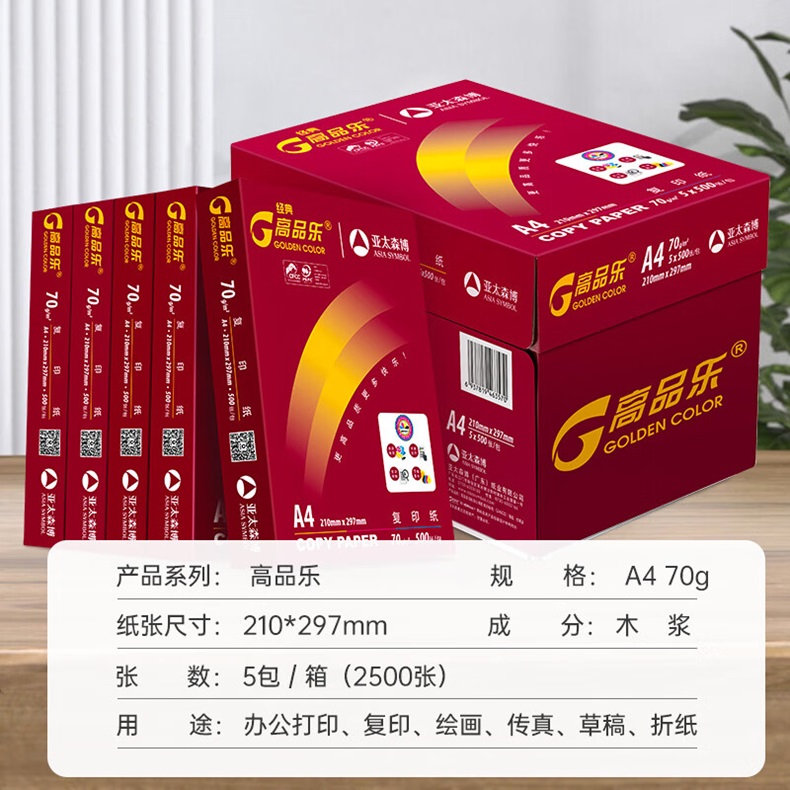 商品属性 [供应商] 深圳市怡亚通供应链股份有限公司 [品牌:] 高品乐 [型号:] A4 70g [规格:] 500张/包 5包装
