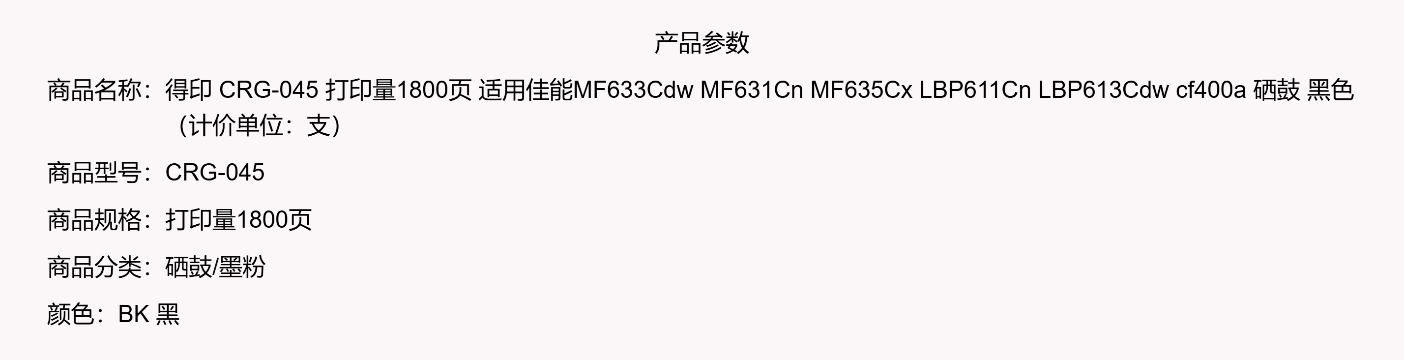 商品属性 [供应商] 德致商成集团有限公司 [打印页数] 1800页 [适用机型] 佳能MF633Cdw MF631Cn MF635Cx LBP611Cn LBP613Cdw cf400a