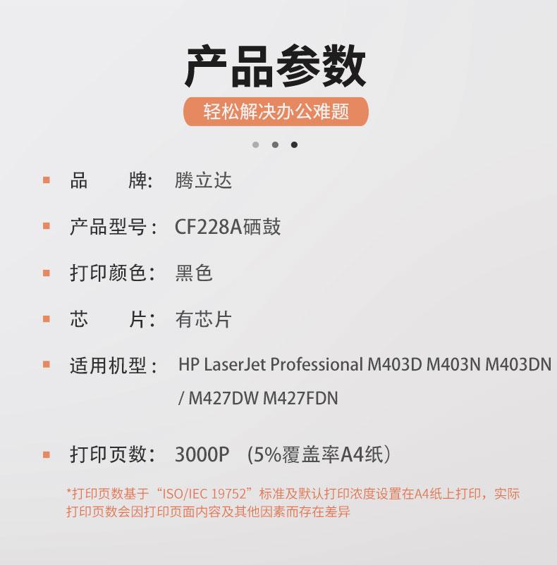 商品属性 [供应商] 深圳市怡亚通供应链股份有限公司 [品牌:] 腾立达 [型号:] CF228A [规格:] 3000页