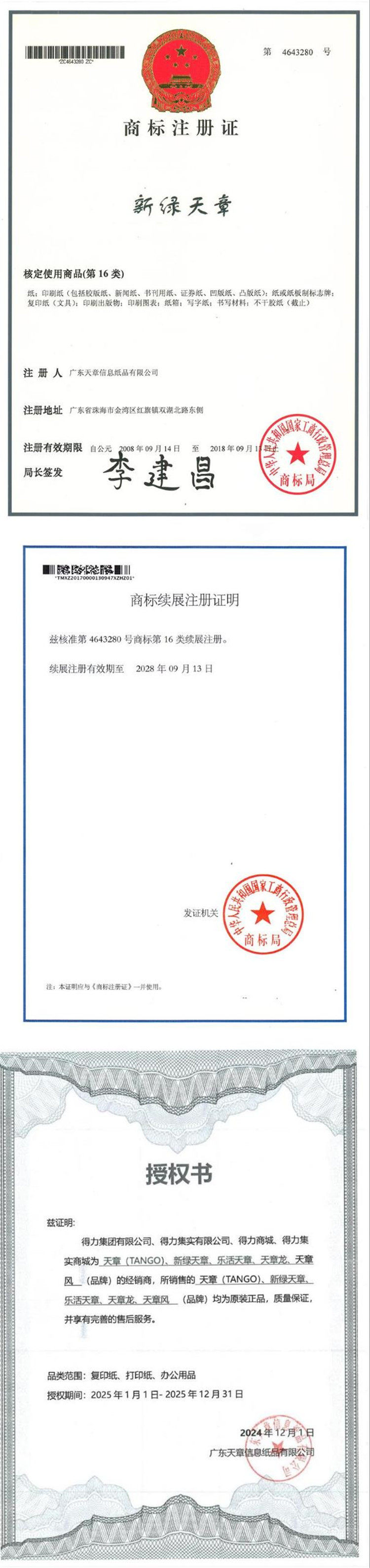 商品属性 [供应商] 得力集团有限公司 [品牌] 新绿天章 [型号] 80g3寸芯