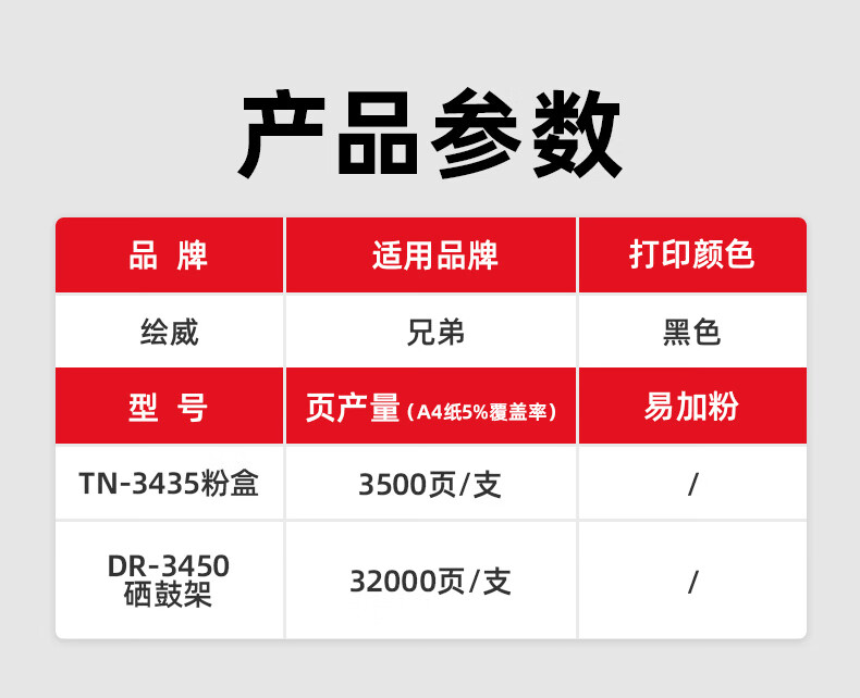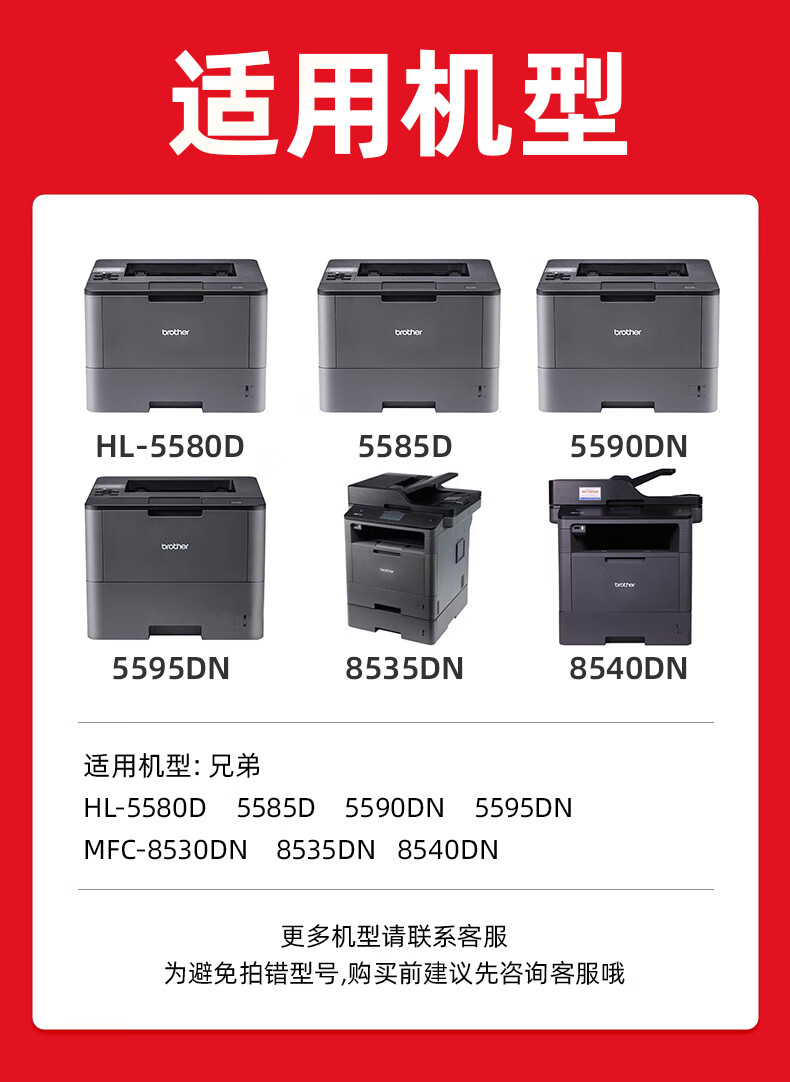 商品属性 [供应商] 德致商成集团有限公司 [打印页数] 32000页 [原装/通用] 通用耗材 [包装清单] 硒鼓架*1 [类别] 成像鼓 [适用机型] 兄弟HL-5580D 5585D 5590DN 5595DN MFC-8530DN 8535DN 8540DN打印机