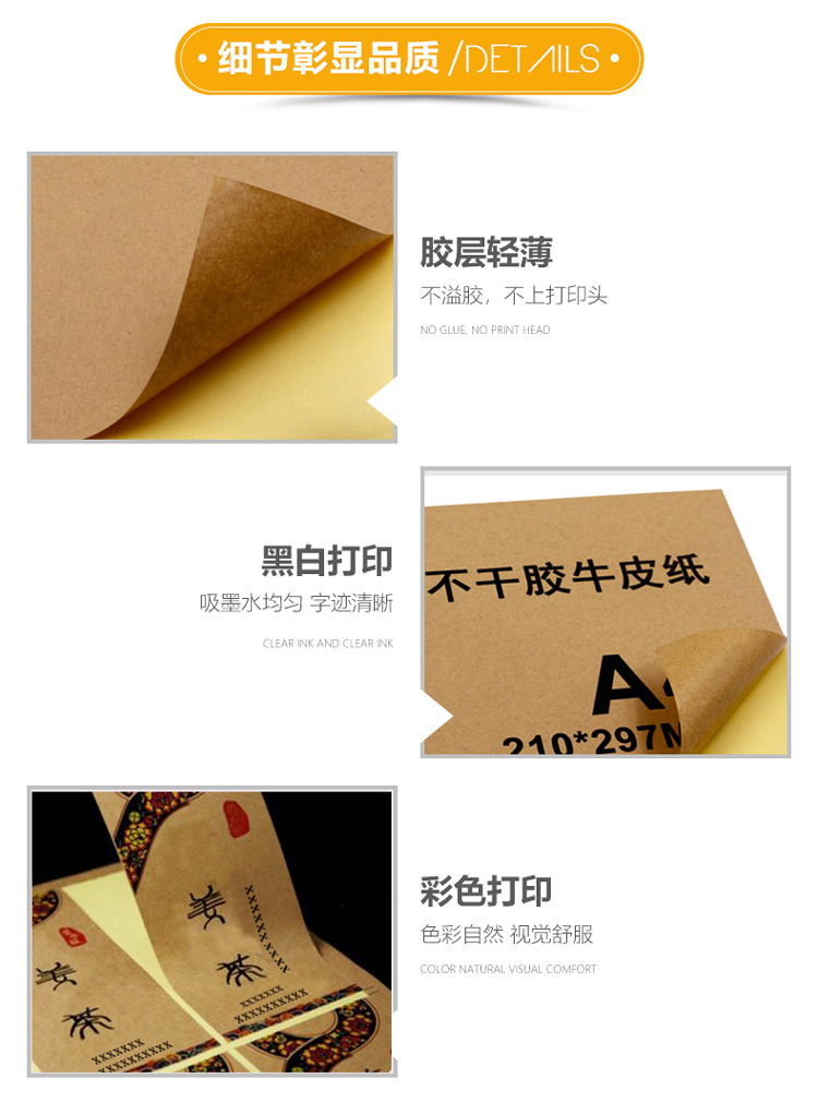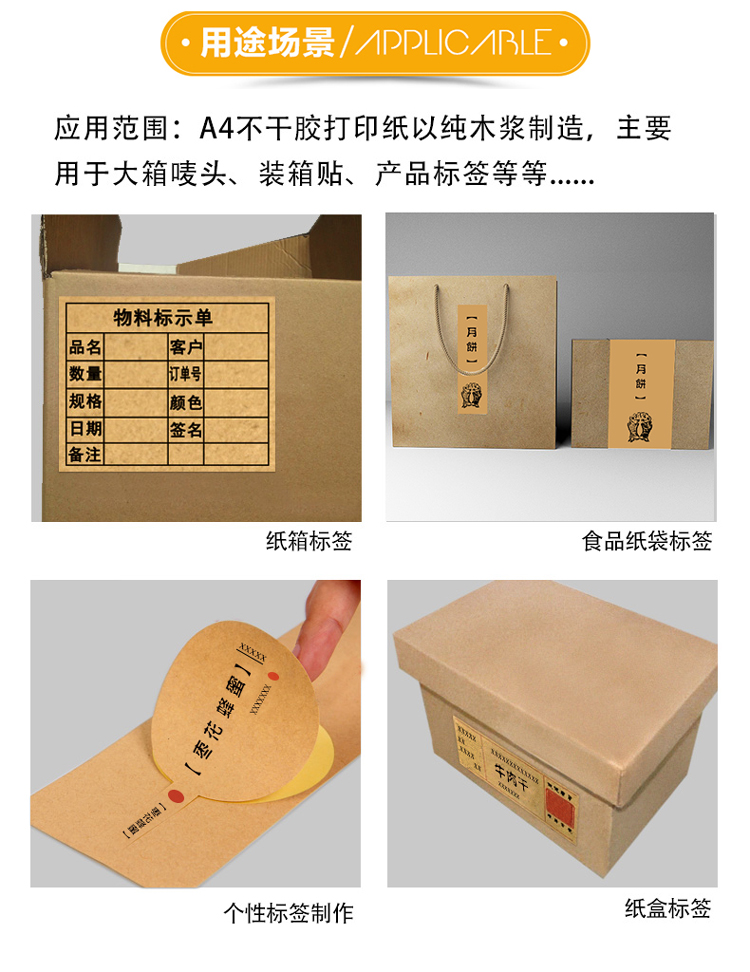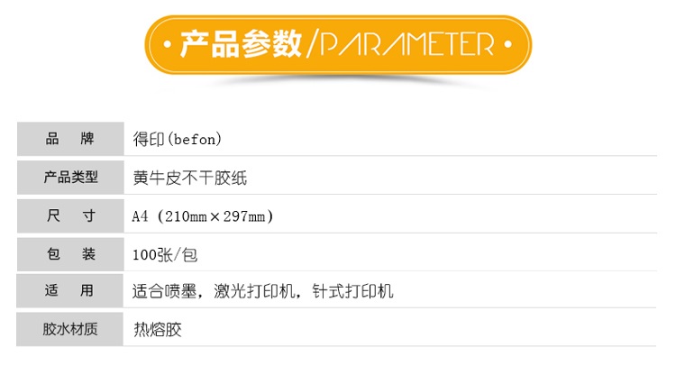商品属性 [供应商] 深圳市云中鹤科技股份有限公司 [品牌名称:] 得印(DEYIN) [商品型号:] 不干胶黄牛皮纸 [商品sku编码:] 1125899908225542 [重量:] 0.18kg [产地:] 国产 [单位:] 包 [保质期:] 天