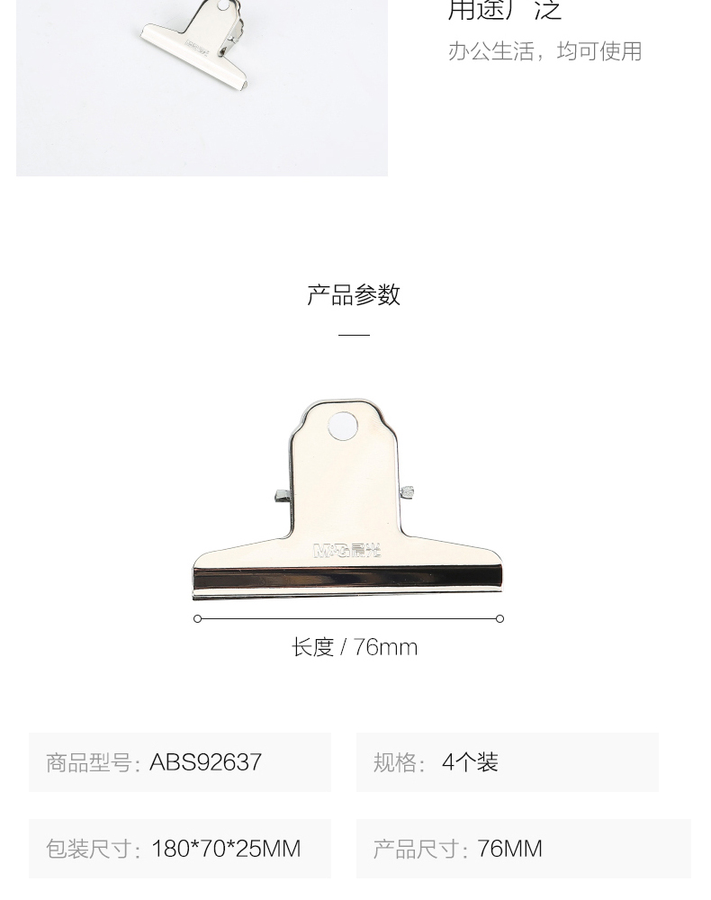 商品属性 [供应商] 科力普科技集团股份有限公司 [材质] 优质钢材 [品牌] 晨光 [型号] ABS92637 [内包装] 4个/袋