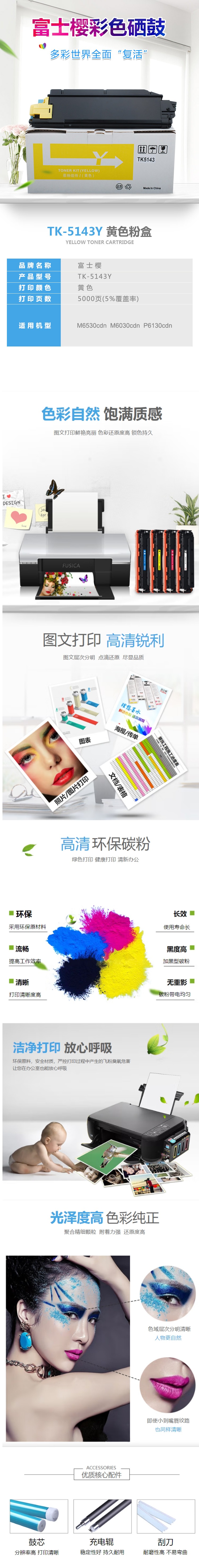 商品属性 [供应商] 全程速达科技有限公司 [名称] 内容 [品牌:] 富士樱 [商品名称:] 墨粉盒 [型号:] TK-5143Y