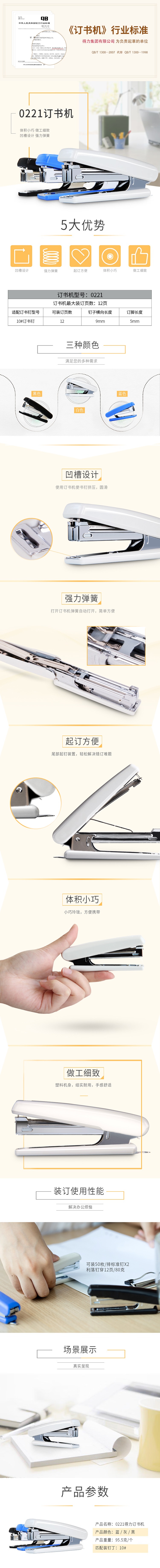 商品属性 [供应商] 全程速达科技有限公司 [名称] 内容 [品牌:] 得力(deli) [商品名称:] 经典耐用订书机 [型号:] 0221