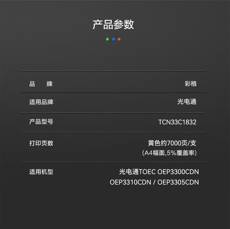 商品属性 [供应商] 北京京东世纪信息技术有限公司 [是否带芯片] 带芯片 [单支打印页数] 7000页 [硒鼓型号] TCN33C1832 [总打印页数] 7000页