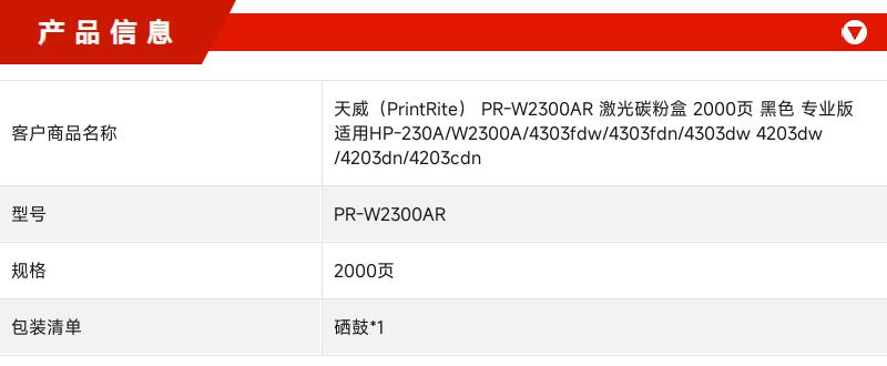 商品属性 [供应商] 史泰博(上海)有限公司 [品牌] 天威(PrintRite) [型号] PR-W2300AR