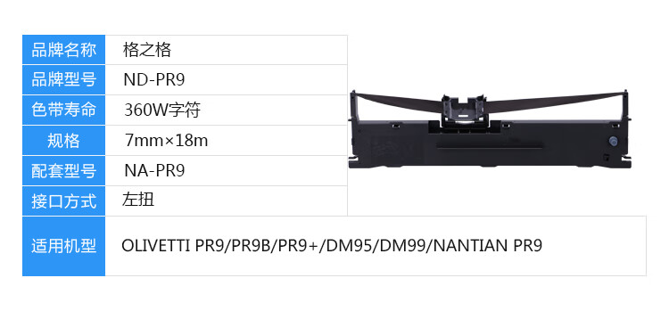 商品属性 [供应商] 北京京东世纪信息技术有限公司 [带架规格(mmxm)] 7mm*18m [型号] ND-PR9 [支数] 1支 [适用机型] PR9