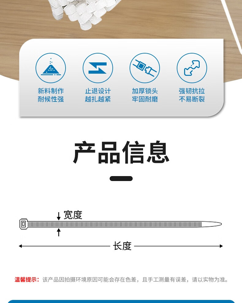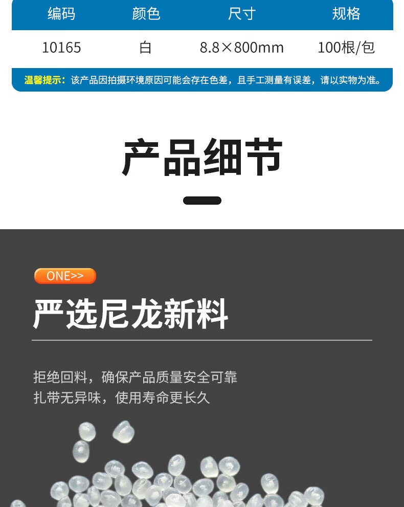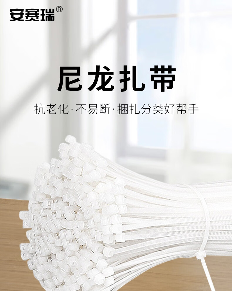 安赛瑞 10165 尼龙扎带 8.8×800mm 白色 100根/包(单位:包)