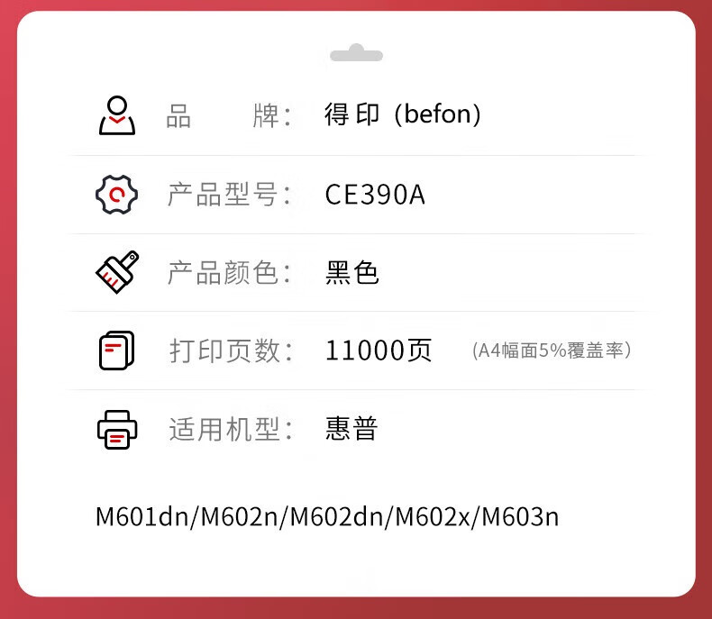 商品属性 [供应商] 北京京东世纪信息技术有限公司 [是否带芯片] 带芯片 [单支打印页数] 11000页 [硒鼓型号] CE390A [总打印页数] 11000页