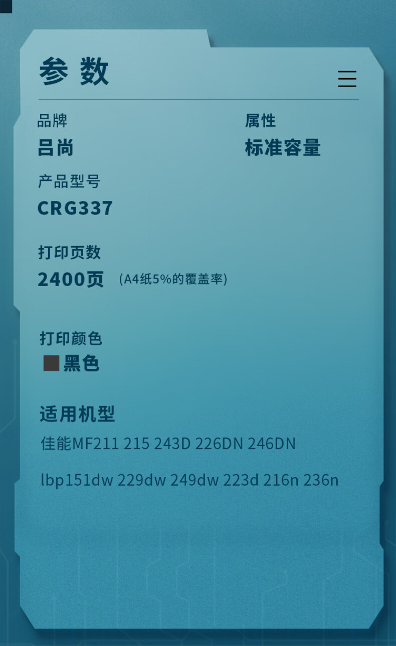 商品属性 [供应商] 史泰博(上海)有限公司 [品牌] 吕尚 [型号] CRG337