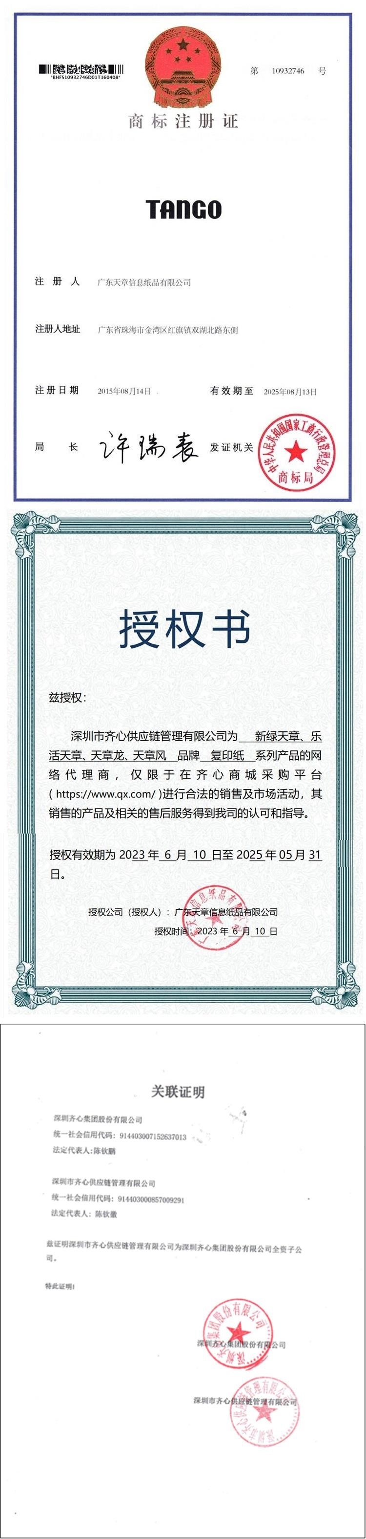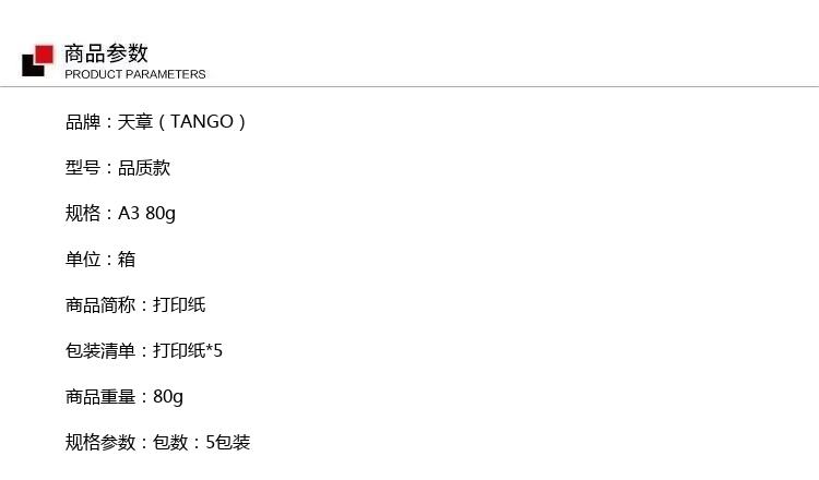 商品属性 [供应商] 深圳齐心集团股份有限公司 [品牌] 天章(TANGO) [型号] 品质款 [包数] 5包装