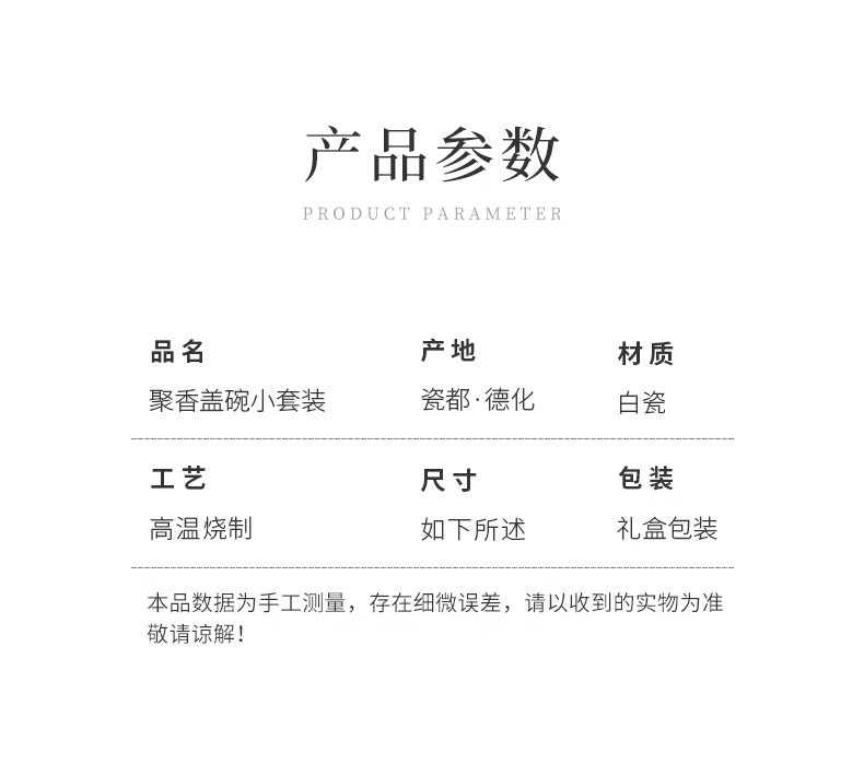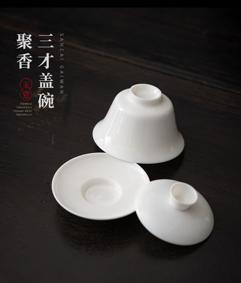 商品属性 [供应商] 深圳市怡亚通供应链股份有限公司 [品牌:] 苏氏陶瓷(SUSHI CERAMICS) [型号:] 羊脂玉瓷 [规格:] 3件套 三才盖碗110ml*1+聚香杯40ml*2