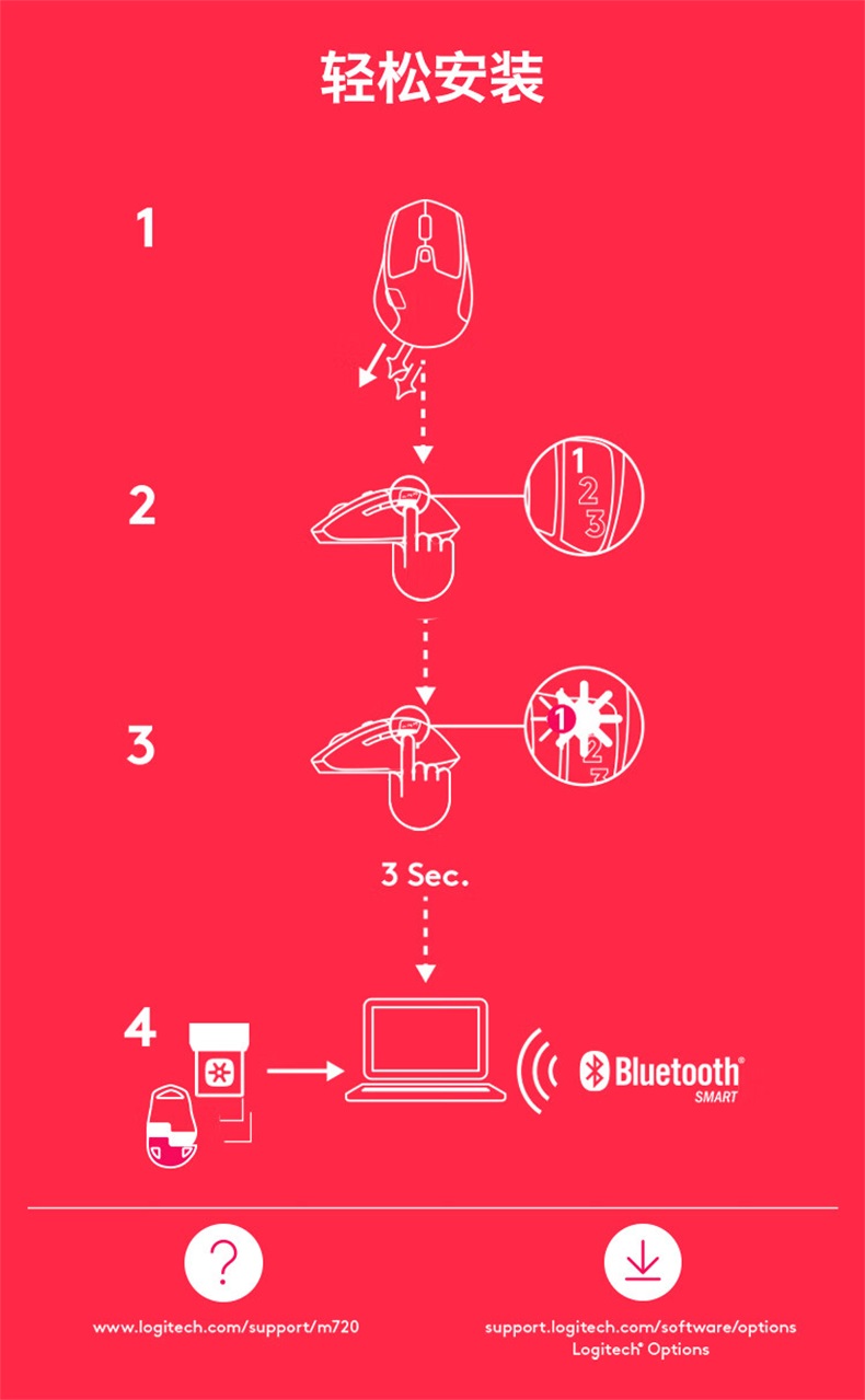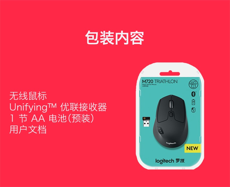 商品属性 [供应商] 科力普科技集团股份有限公司 [工作方式] 无线蓝牙 [接口] USB2.0/蓝牙 [品牌] 罗技 [型号] M720