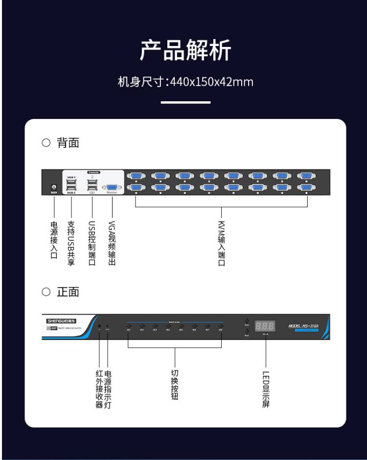 商品属性 [供应商] 深圳市怡亚通供应链股份有限公司 [品牌:] 胜为(shengwei) [型号:] KS-316A [规格:] 16进1出 1920*1440/60Hz 频宽500MHZ
