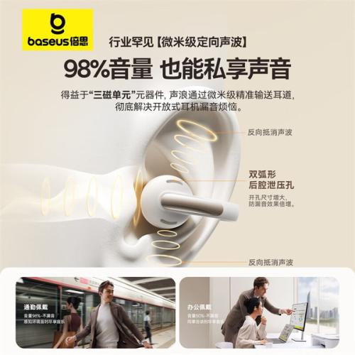 商品属性 [供应商] 德致商成集团有限公司 [主机机型] 倍思MC1 [防尘性能] IP5X [振膜类型] 镀钛动圈 [佩戴方式] 耳夹式 [包装形式] 单品 [特色功能] 通话降噪 [充电接口] Type-C [防水等级] IPX7 [场景] 音乐耳机