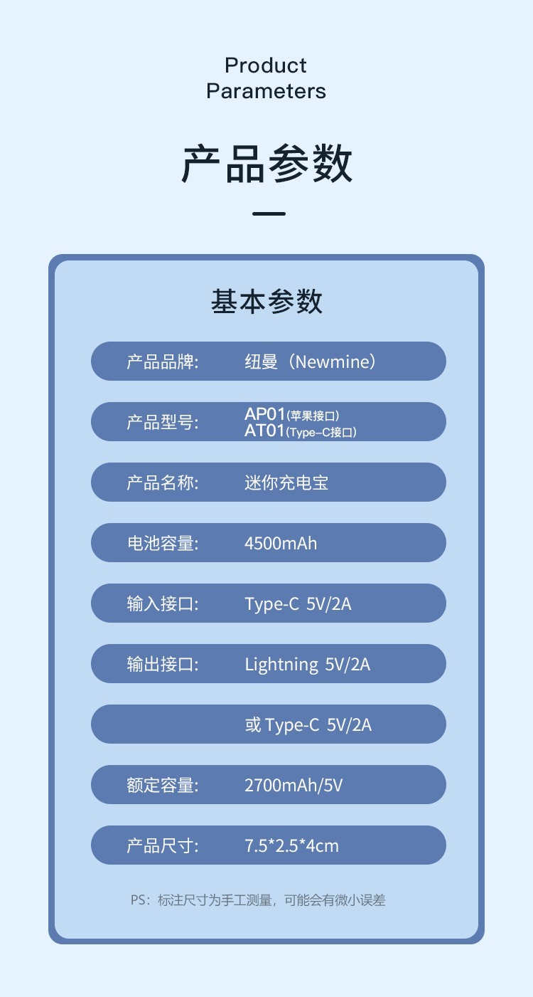 商品属性 [供应商] 深圳市怡亚通供应链股份有限公司 [品牌:] 纽曼(Newmine) [型号:] AP01 [规格:] 4500毫安 苹果接口专用