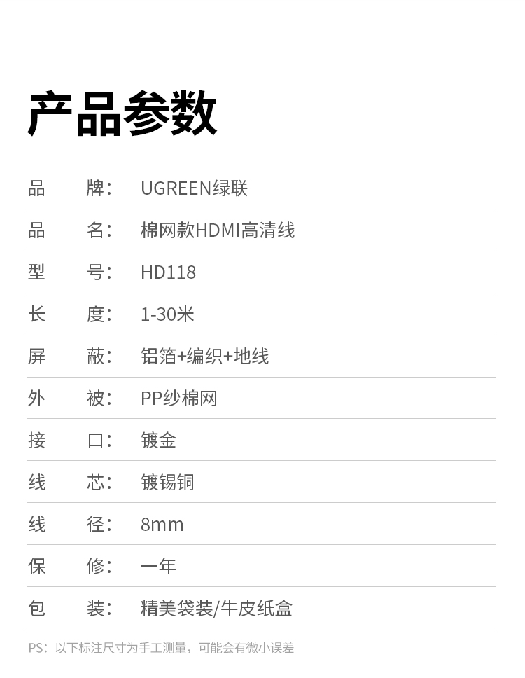 商品属性 [供应商] 深圳市云中鹤科技股份有限公司 [品牌名称:] 绿联(UGREEN) [商品型号:] 绿联40411 [商品sku编码:] 1125899909102586 [重量:] 0.30kg [产地:] 中国 [单位:] 条