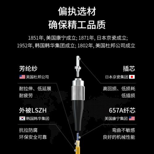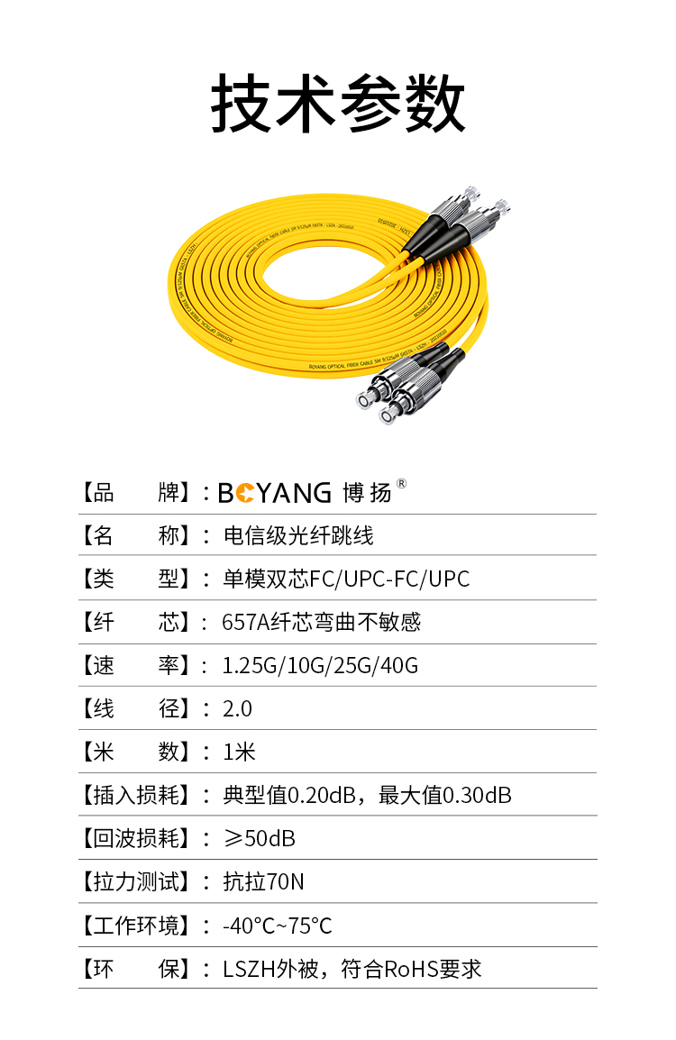 商品属性 [供应商] 德致商成集团有限公司 [铜芯标准] 其他 [传输模式] 单模9/125 [商品毛重] 25.00g [屏蔽类型] 其他 [外被性能] 低烟无卤 [外形外观] 圆形 [光纤保护] 非铠装 [性能等级] G.657A [商品产地] 中国大陆 [类型] 光纤跳线