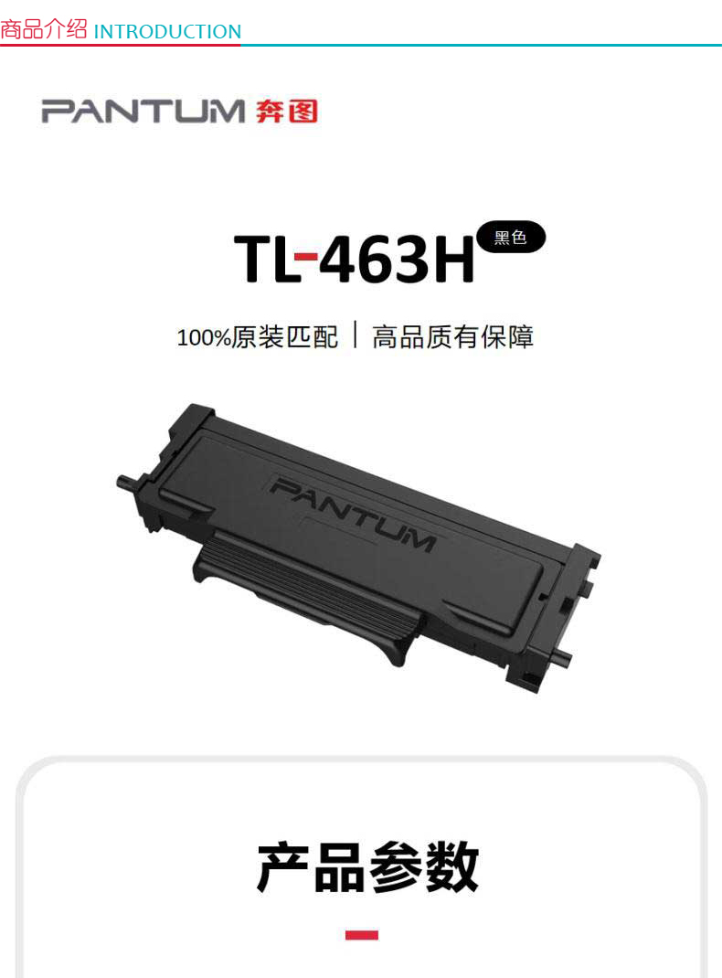商品属性 [供应商] 科力普科技集团股份有限公司 [适用机型] 奔图P3301DN [产地] 广东珠海 [打印量] 3000页(A4纸5%的覆盖率) [品牌] 奔图 [型号] TL-463H