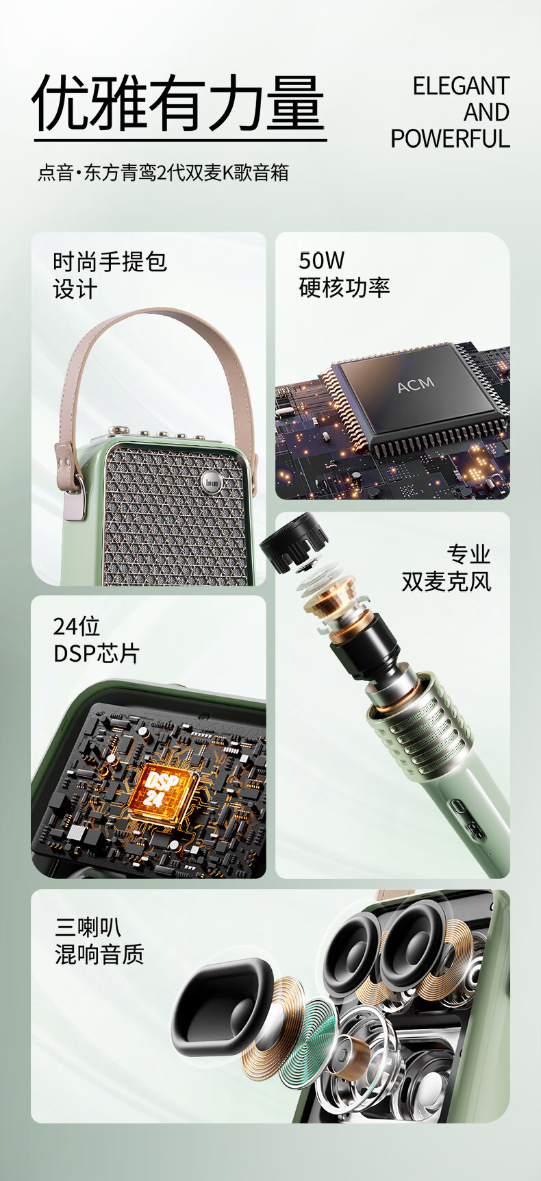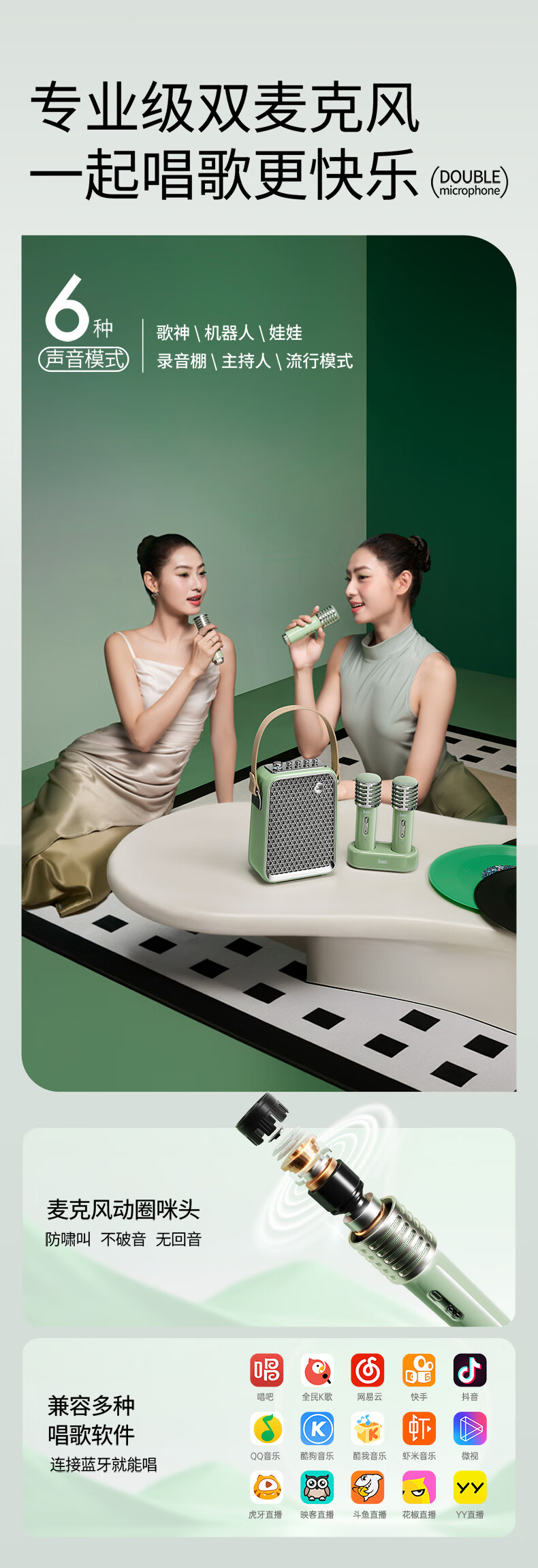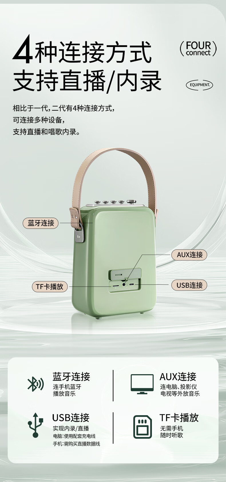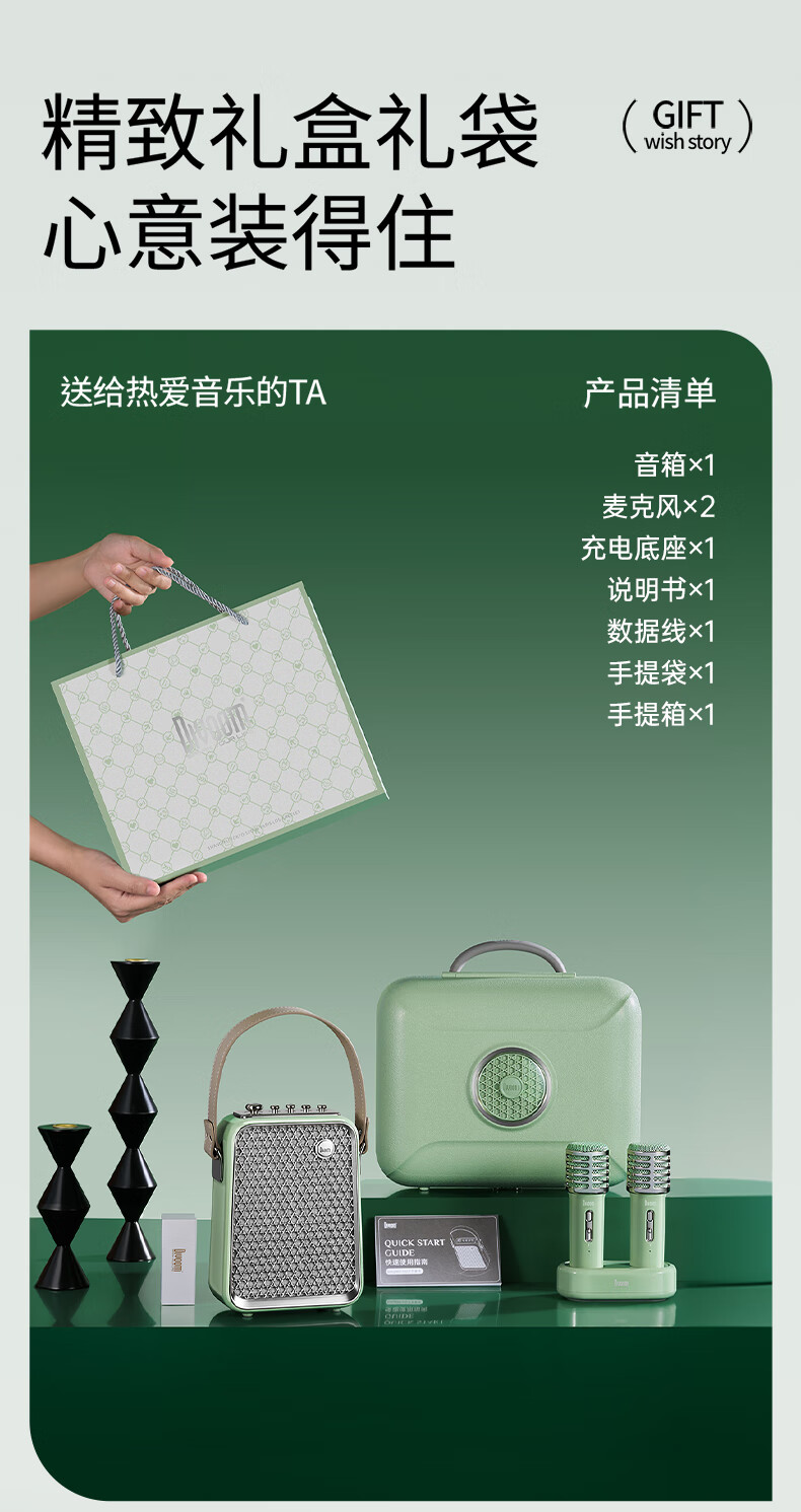 商品属性 [供应商] 得力集团有限公司 [品牌] Divoom点音 [型号] SongBird-HQ-2 [商品标题] Divoom点音 SongBird-HQ-2 蓝牙音箱家庭KTV音响带双麦克风 户外便携无线唱歌话筒音响 东方青鸾 (单位:套) [销售单位] 套