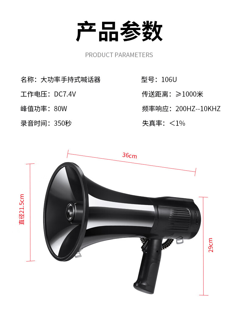 商品属性 [供应商] 德致商成集团有限公司 [适用场景] 抢险救灾,房产物业,家用 [材质] ABS [是否支持定制] 不可定制 [包装清单] 喊话器*1