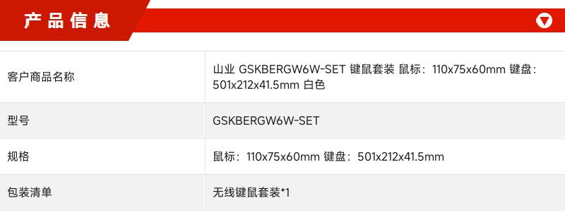 商品属性 [供应商] 史泰博(上海)有限公司 [品牌] 山业 [型号] GSKBERGW6W-SET