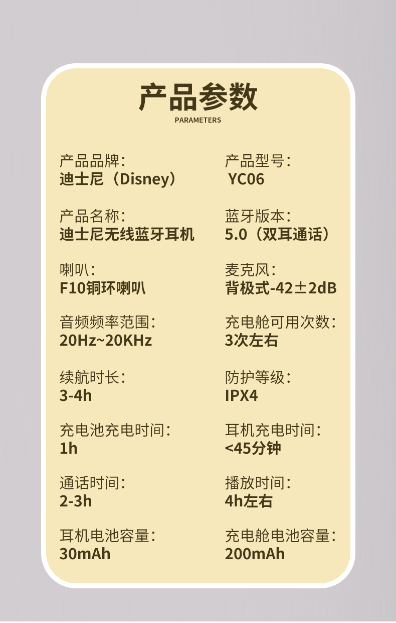 商品属性 [供应商] 深圳市怡亚通供应链股份有限公司 [品牌:] 迪士尼(Disney) [型号:] YC06 [规格:] 续航时长3-4h