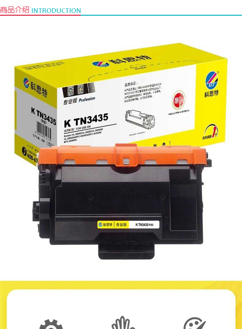商品属性 [供应商] 科力普科技集团股份有限公司 [商品毛重] 1300g [打印量] 约3000页 [适用机型] 适用机型:Brother HL-5580D/HL-5585D [品牌] 科思特 [型号] K TN3435