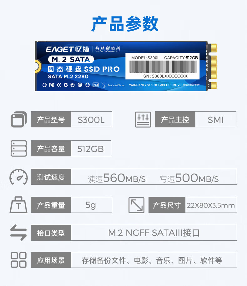 商品属性 [供应商] 北京京东世纪信息技术有限公司 [系列] S300L [闪存类型] 其他 [型号] S300L [缓存] 无缓存 [顺序写入] 500MB/s [顺序读速] 560MB/s