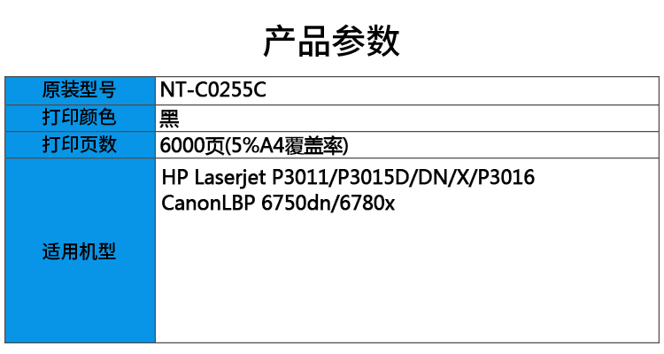 商品属性 [供应商] 德致商成集团有限公司 [打印量] 6000页打印量 [适用机型] 适用HP P3011 P3015D P3015DN P3015X P3016