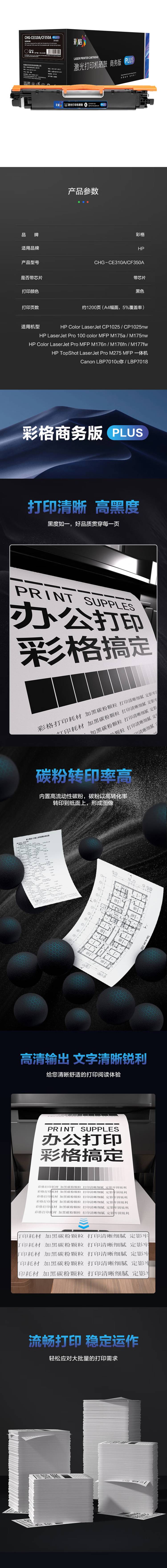 商品属性 [供应商] 全程速达科技有限公司 [名称] 内容 [品牌:] 彩格 [商品名称:] PLUS版 硒鼓 [型号:] CHG-CE310A