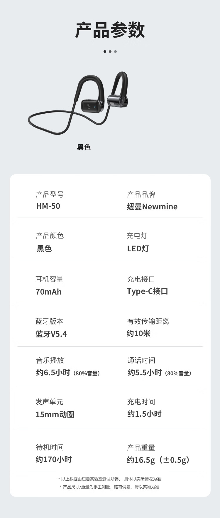 商品属性 [供应商] 苏宁易购集团股份有限公司 [型号] HM-50 [类型] 无线耳机 [耳机频响范围] 20Hz-20KHz [耳机阻抗] 32 [是否有线控] 无线控 [是否内置麦克风] 是 [耳机灵敏度] / [最大承载功率] / [插头直径] 3.5mm [佩戴方式] 耳挂式 [产地] 中国北京北京市